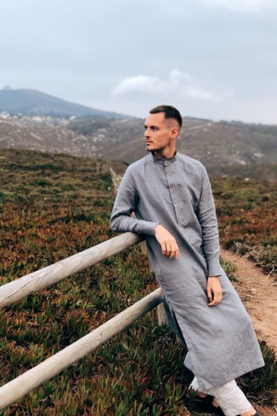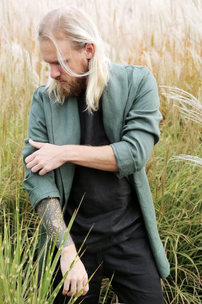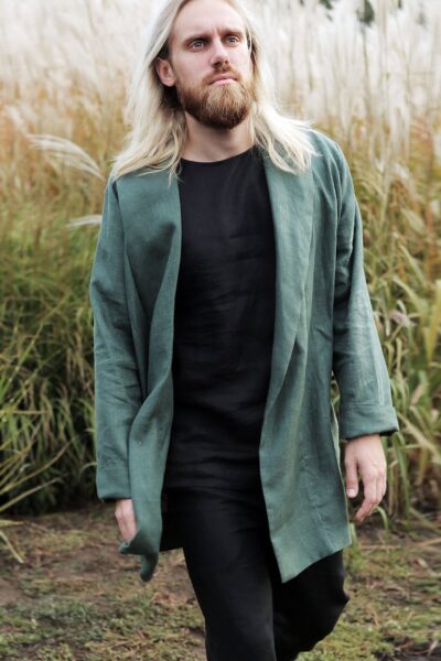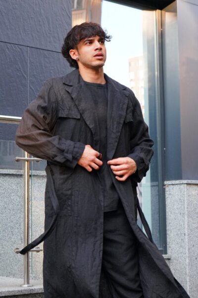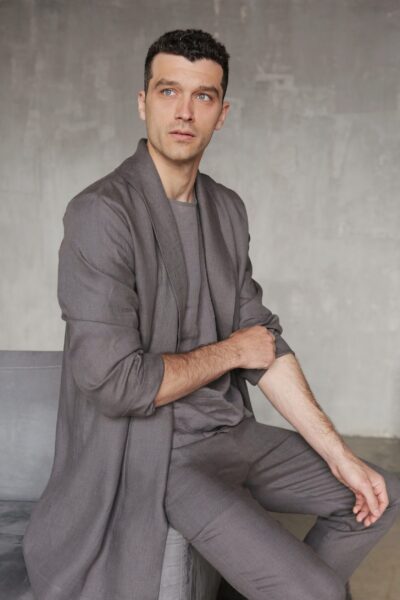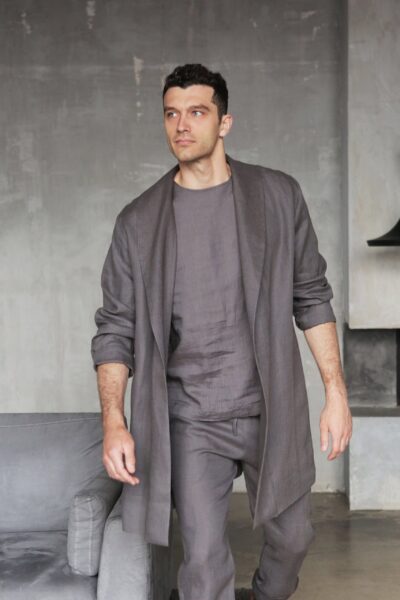 Linen Cardigan for man. Dark grey Men’s Linen Trench made from 100% Linen and available in a variety of colors.