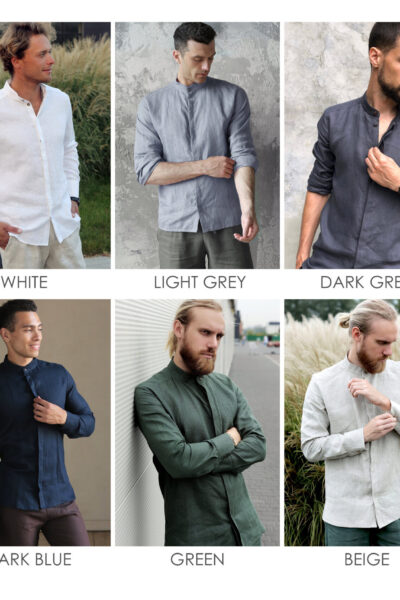 Collarless Linen Shirt Sage Green Linen for Men Boxy Shape