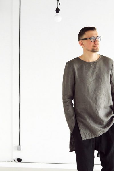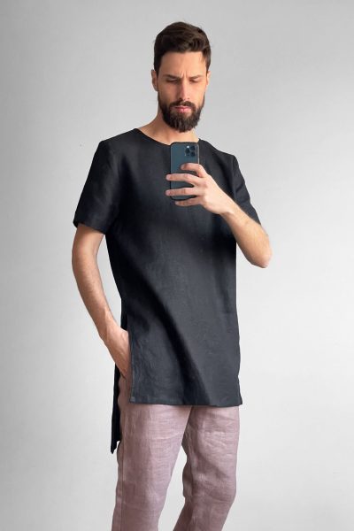 Men's linen t-shirt with slits. Color in the picture – Black This T-Shirt is made from 100% Linen and is