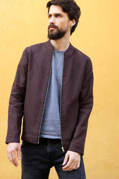 Brown linen men's bomber jacket. Gifts for him! Classic handmade men's bomber. Comfortable and stylish men's bomber jacket. This bomber