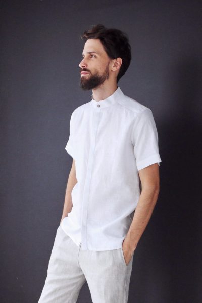 Linen Grandad Shirt Clean Collar Linen for Men Airy Profile