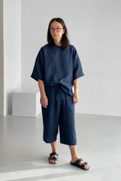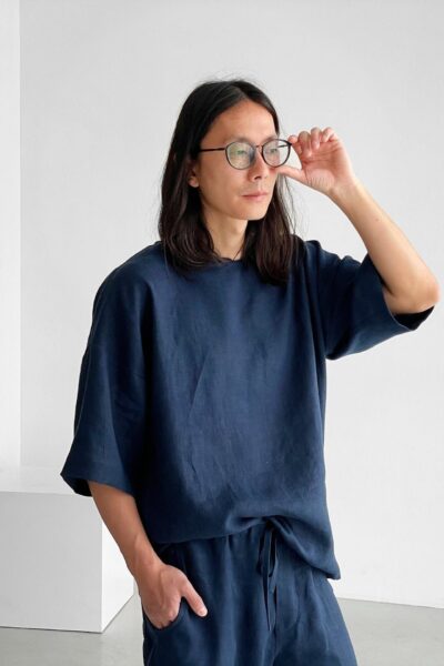 Oversized linen men's t-shirt. Color in the picture – Dark blue This T-Shirt is versatile, it is cozy and comfortable
