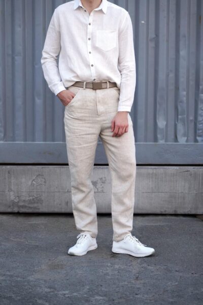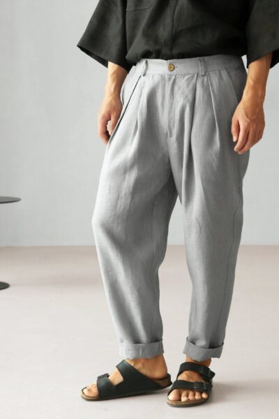 Tailored Linen Slacks Natural Texture Linen for Men Loose Drape