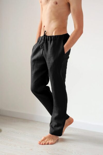 Men's linen pants. Color in the picture – Black. Loose-fit pants are made from 100% Linen and available in a