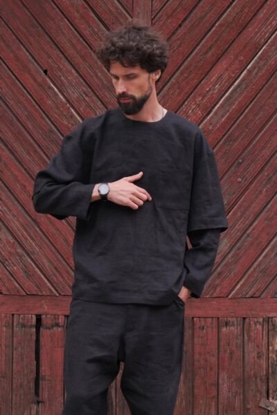 Linen men's t-shirt. This black T-Shirt is versatile, it is cozy and comfortable outdoors as well as at home. Comfortable