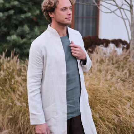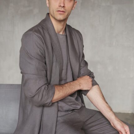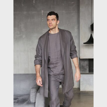 Linen Cardigan for man. Dark grey Men’s Linen Trench made from 100% Linen and available in a variety of colors.