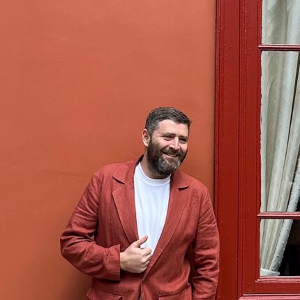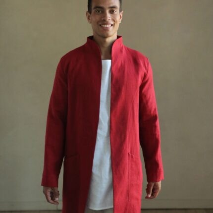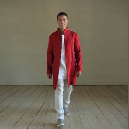 Men’s Linen Trench. Color in the picture – Red. This trench is made from 100% Linen and is available in