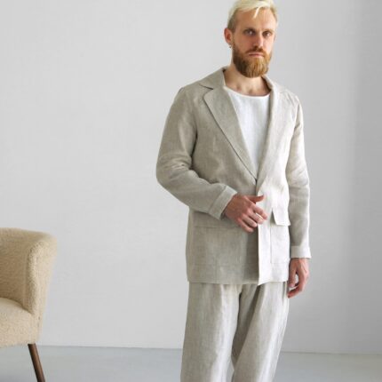 Men's linen Jacket. Wedding Blazer. Color in the picture – Beige (not colored). Men’s Linen Jacket made from 100% Linen