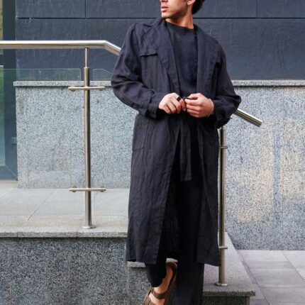 Men's linen trench. Color in the picture – Black. The trench is made from 100% Linen and available in a