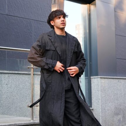 Men’s Linen Trench Coat. Color in the picture – Black. This trench is made from 100% Linen and is available