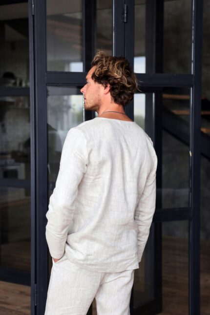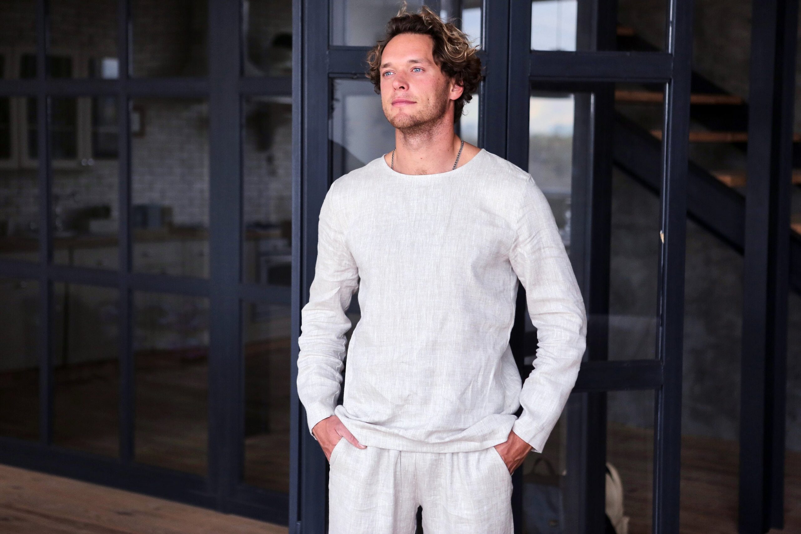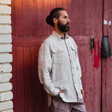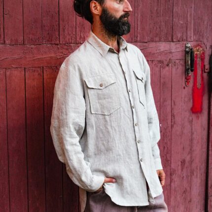 Breathable Linen Shirt Sun-bleached Hue Linen for Men Loose Silhouette
