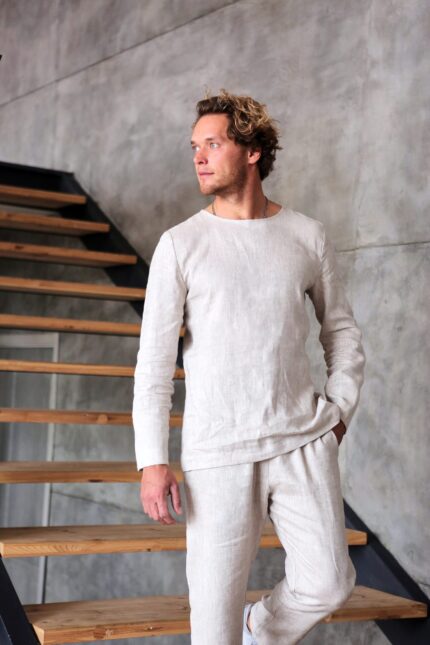 Comfortable and stylish men's t-shirt. Natural linen. The fabric is natural and takes the body shape, over time it becomes softer. Men’s Linen T-Shirt makes a luxurious and functional gift for that special man in your life.
