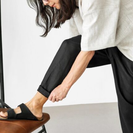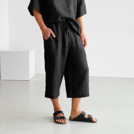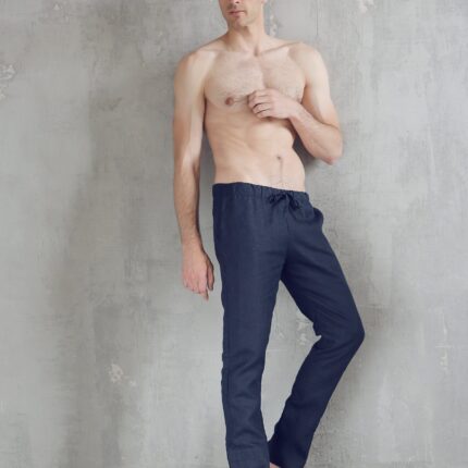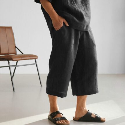Loose-fit pants are made from 100% Linen and available in a variety of colors.