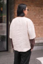 Linen men's t-shirt with double-layer sleeve.