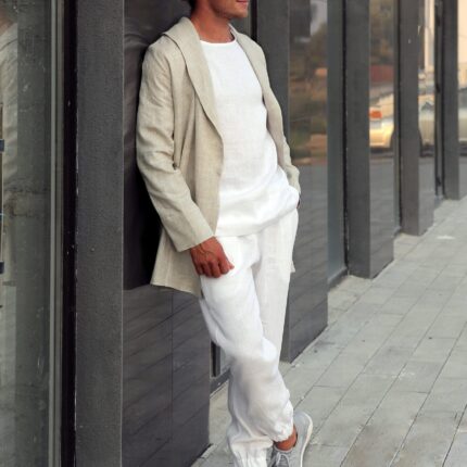 Wear it as a linen coat, summer cloak, or free-breed jacket. Perfect for spring – autumn weather. The cut of our clothes is coined so that it can look appropriate, both on the street and at home. An elegant and comfy linen cardigan makes a luxurious and functional gift for that special man in your life.