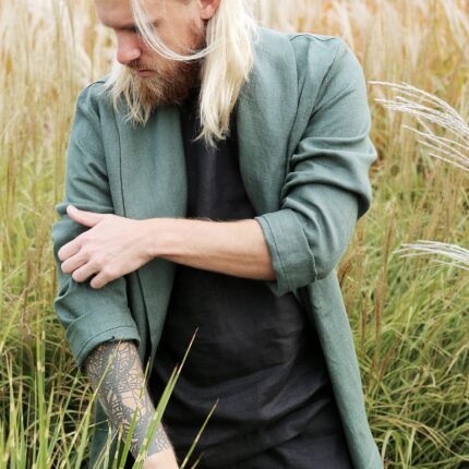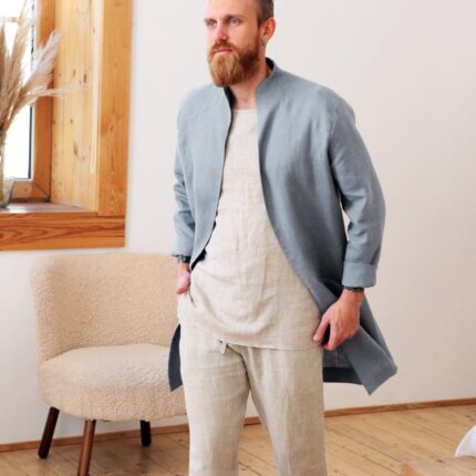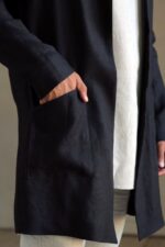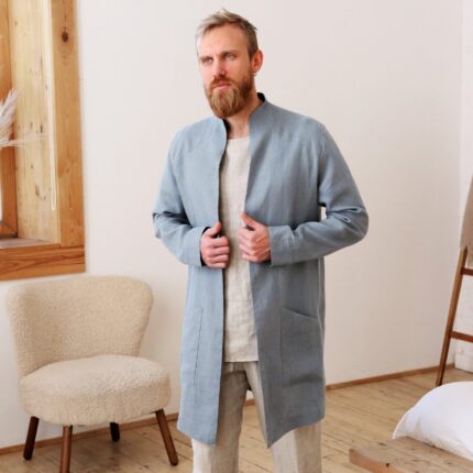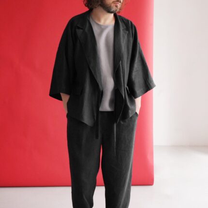 Wear it as a linen coat, summer cloak, free breed jacket. Perfect for spring – autumn weather. The cut of our clothes coined so that it can look appropriate, both on the street and at home.