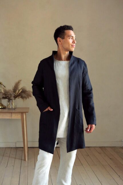 Men’s Linen Trench Coat.