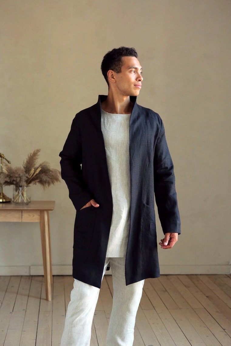 Linen Cardigan Ivory Warmth Linen Fabric for Men Classic Draping Slow Living Days