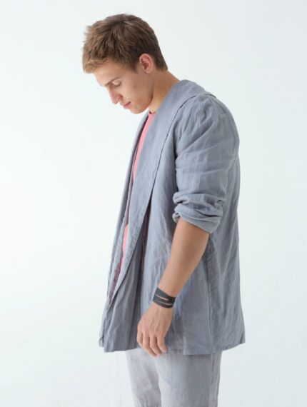 Men’s Linen Cardigan made from 100% Linen and available in a variety of colors. Wear it as a linen coat, summer cloak, free breed jacket. Perfect for spring – autumn weather.