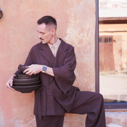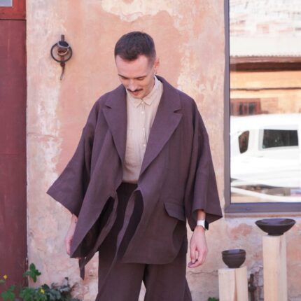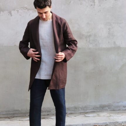 Wear it as a linen coat, summer cloak, free breed jacket. Perfect for spring – autumn weather. The cut of our clothes coined so that it can look appropriate, both on the street and at home.