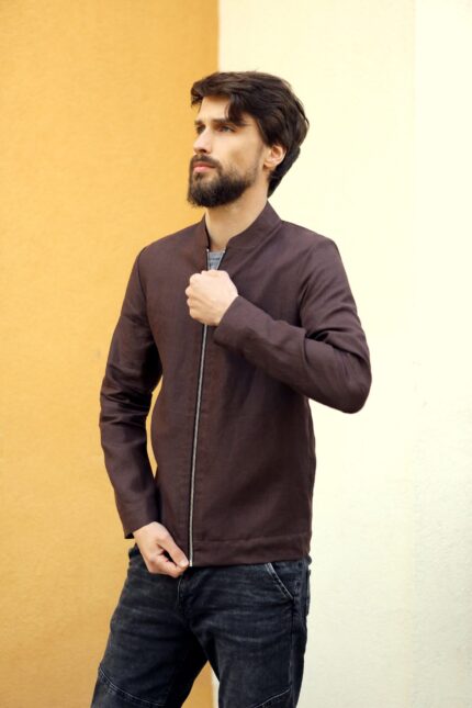 Comfortable and stylish men's bomber jacket. This bomber jacket is versatile, wear it on the street, at the office, at business meetings, or at home. The natural fabric molds to your body shape and over time become softer.