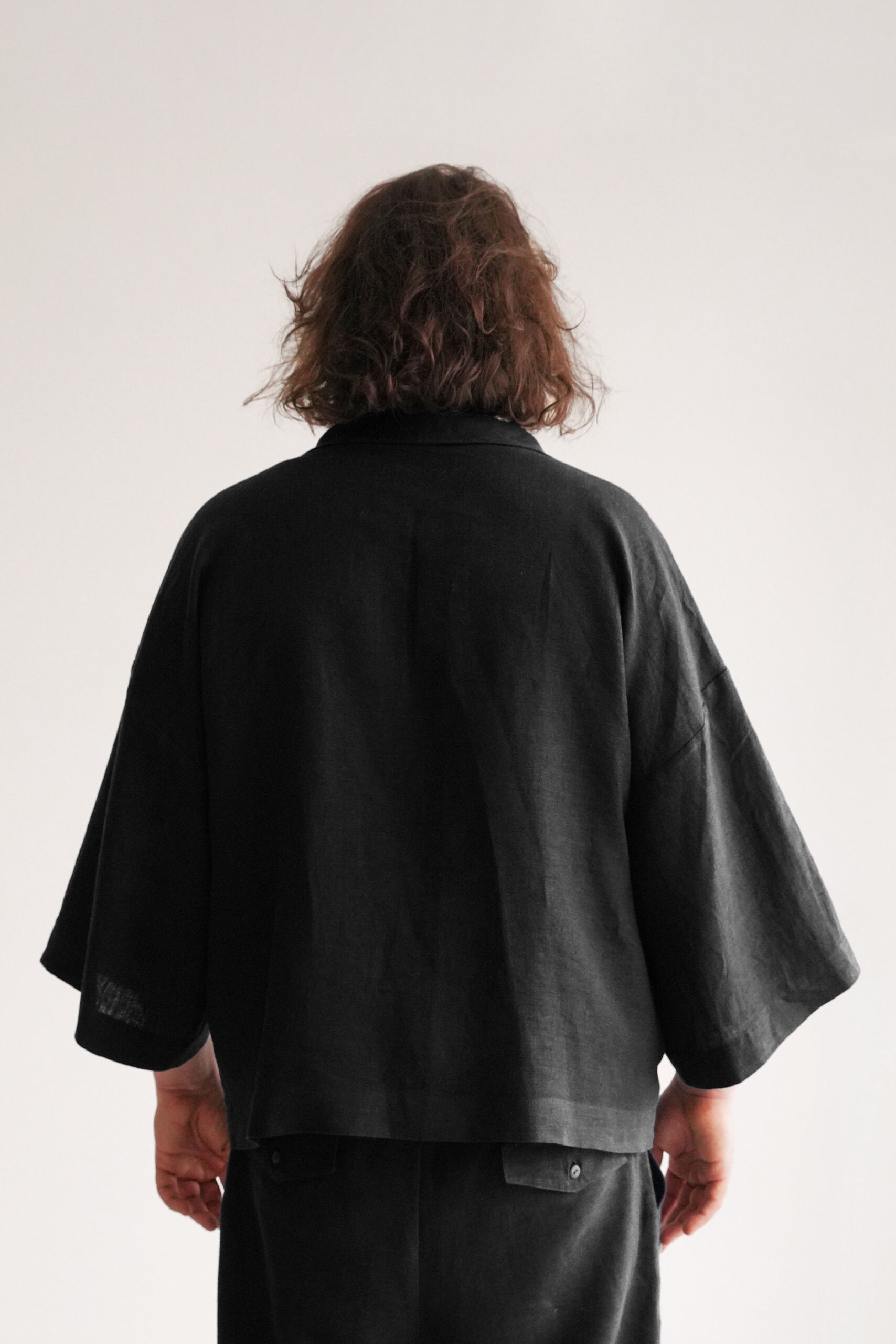 This kimono jacket is made from 100% Linen and is available in a variety of colors.