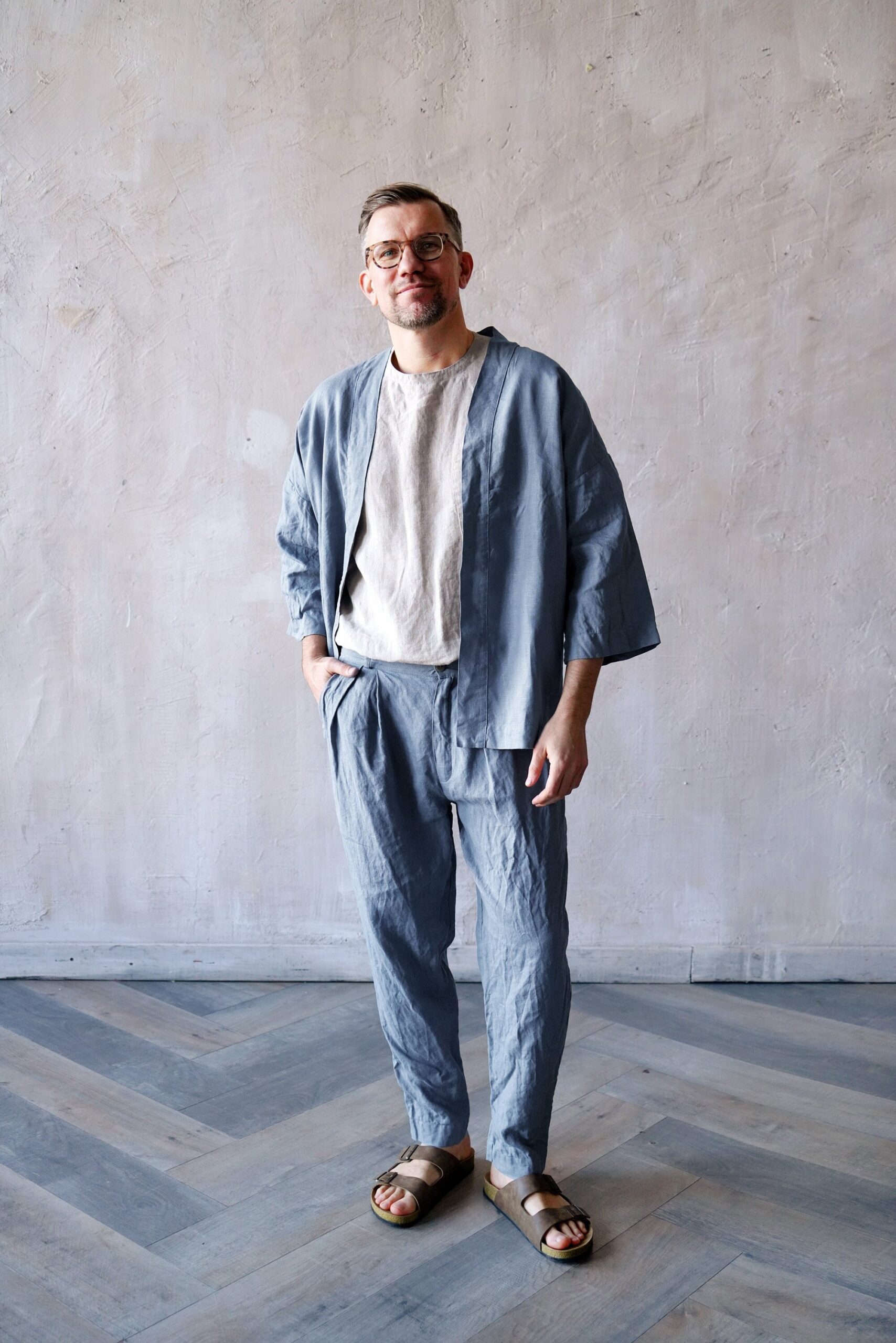 Linen Kimono Minimal Luxe Linen Fabric for Men Classic Draping Slow Living Days