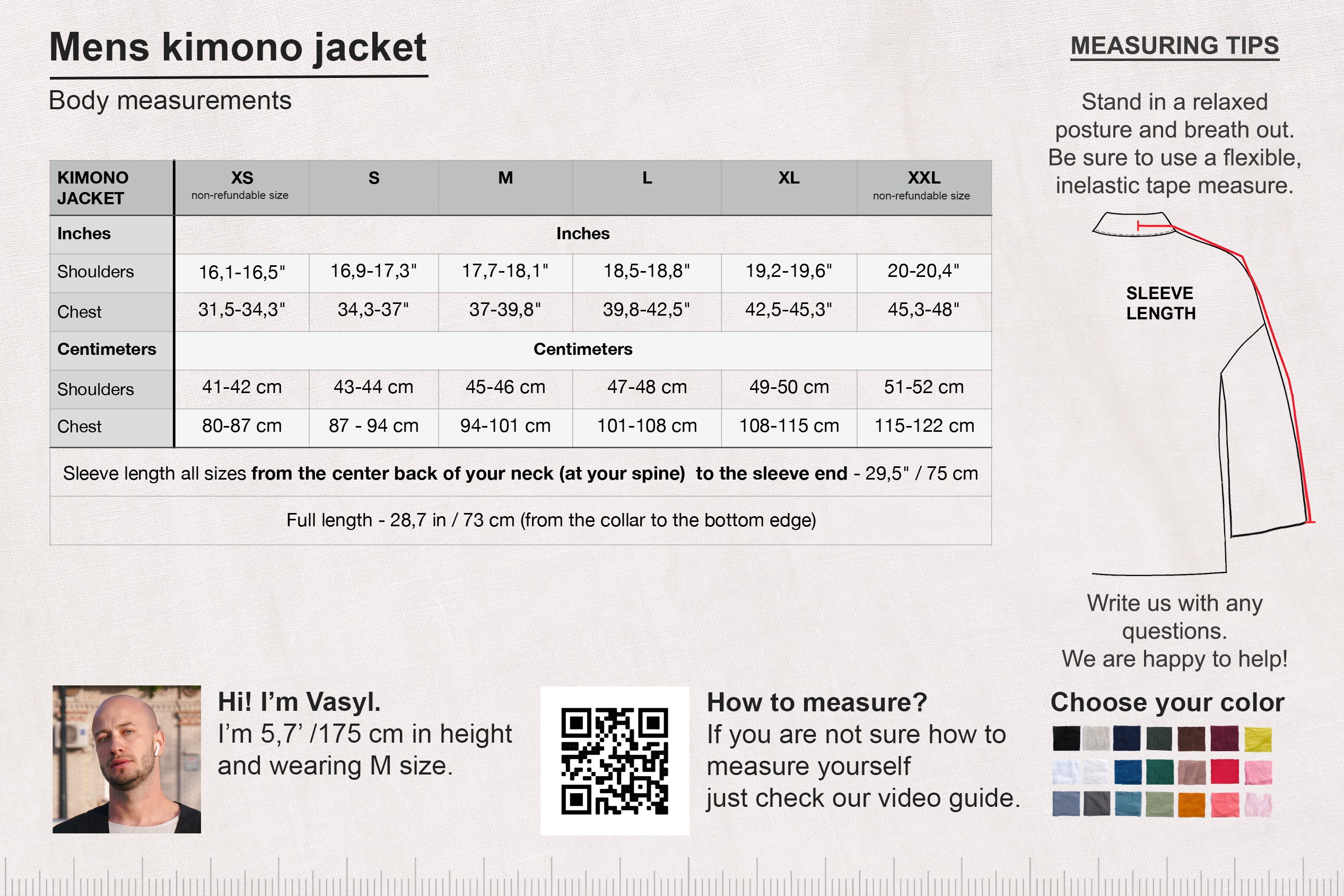 This kimono jacket is made from 100% Linen and is available in a variety of colors.
