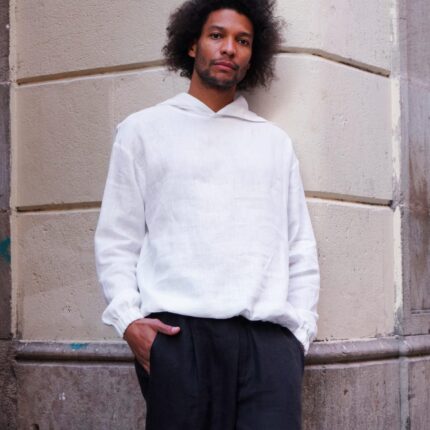 Linen Pullover Shirt Stonewashed Look Linen for Men Boxy Shape
