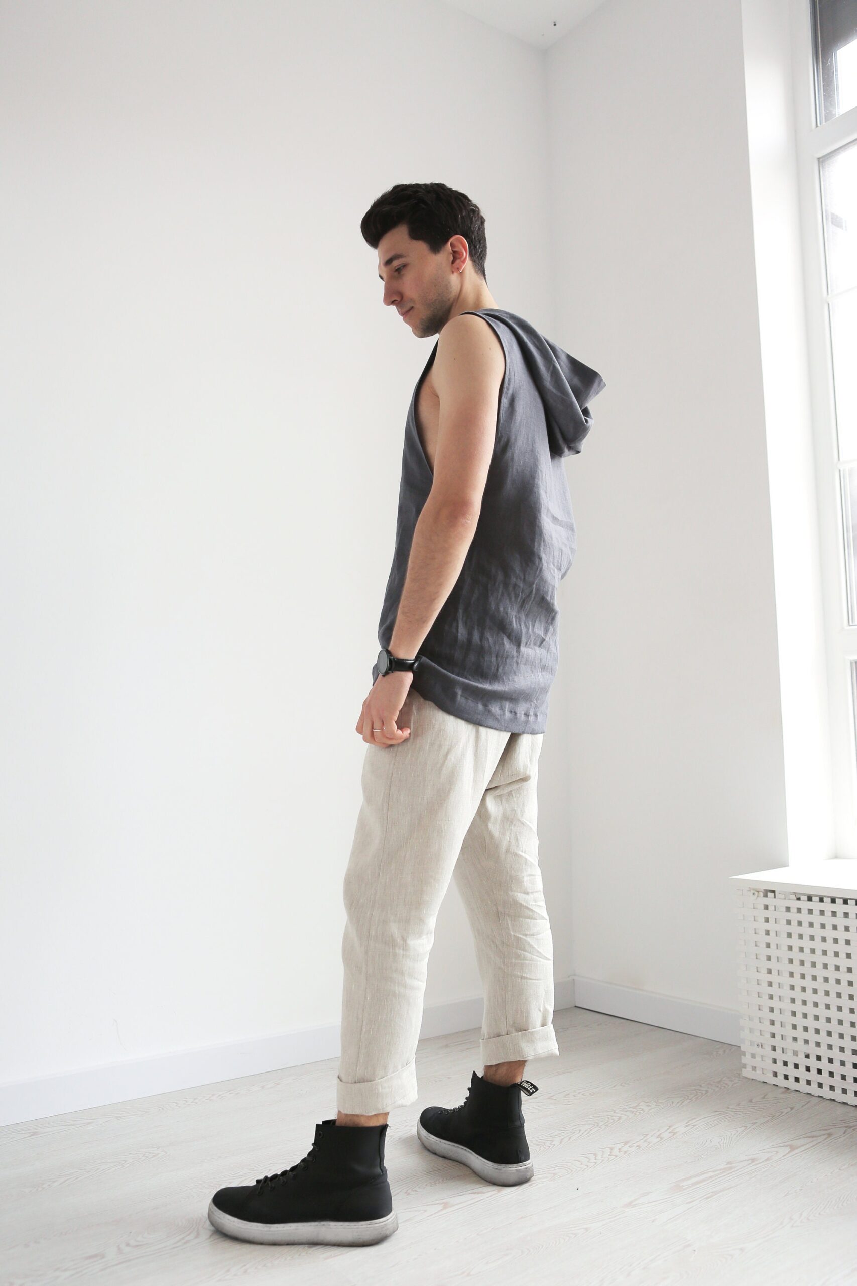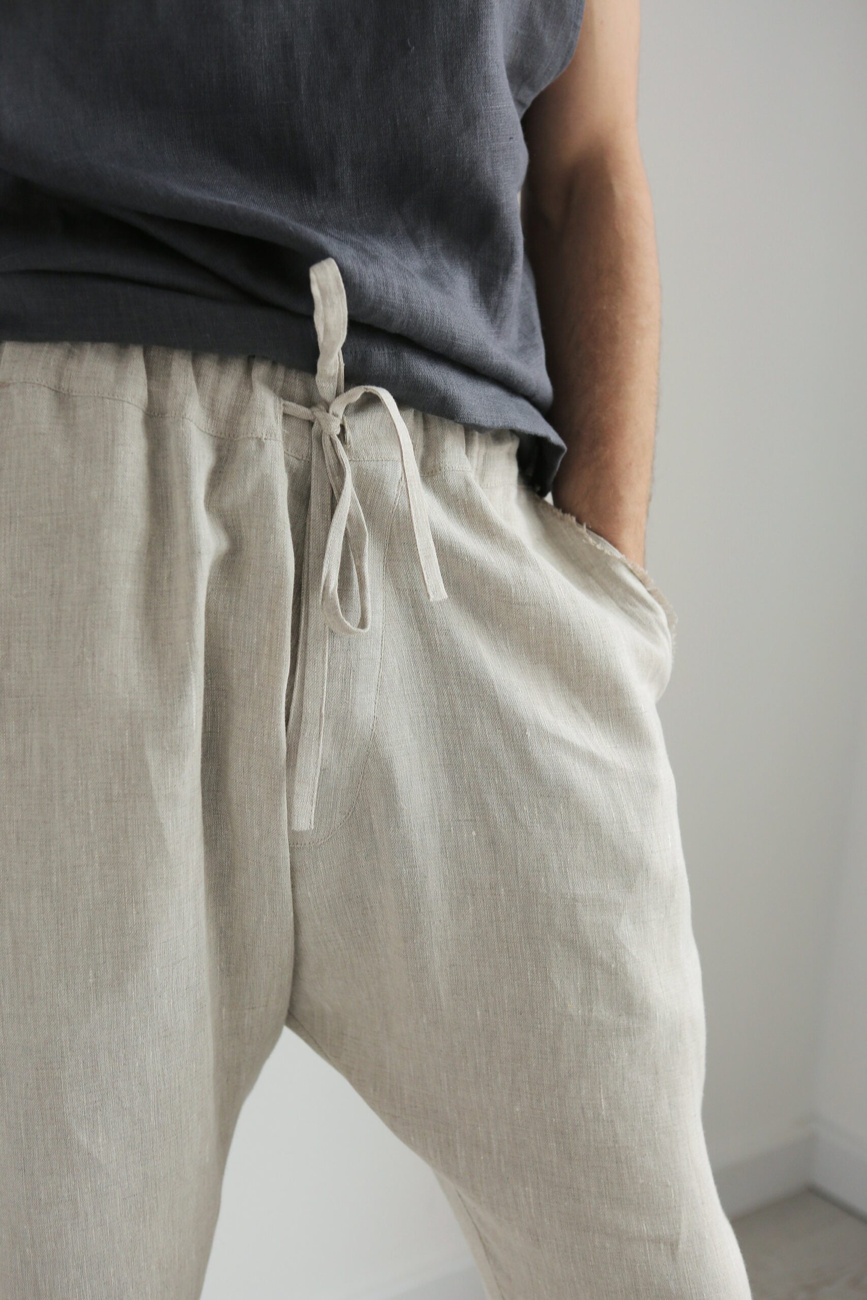 Loose-fit pants are made from 100% Linen and available in a variety of colors.