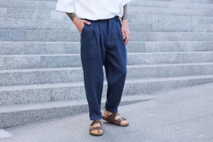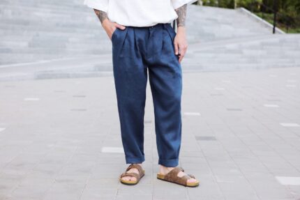 Loose-fit pants are made from 100% Linen and available in a variety of colors.