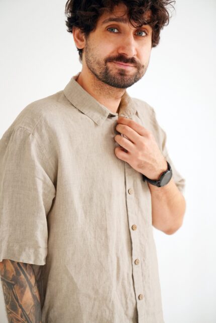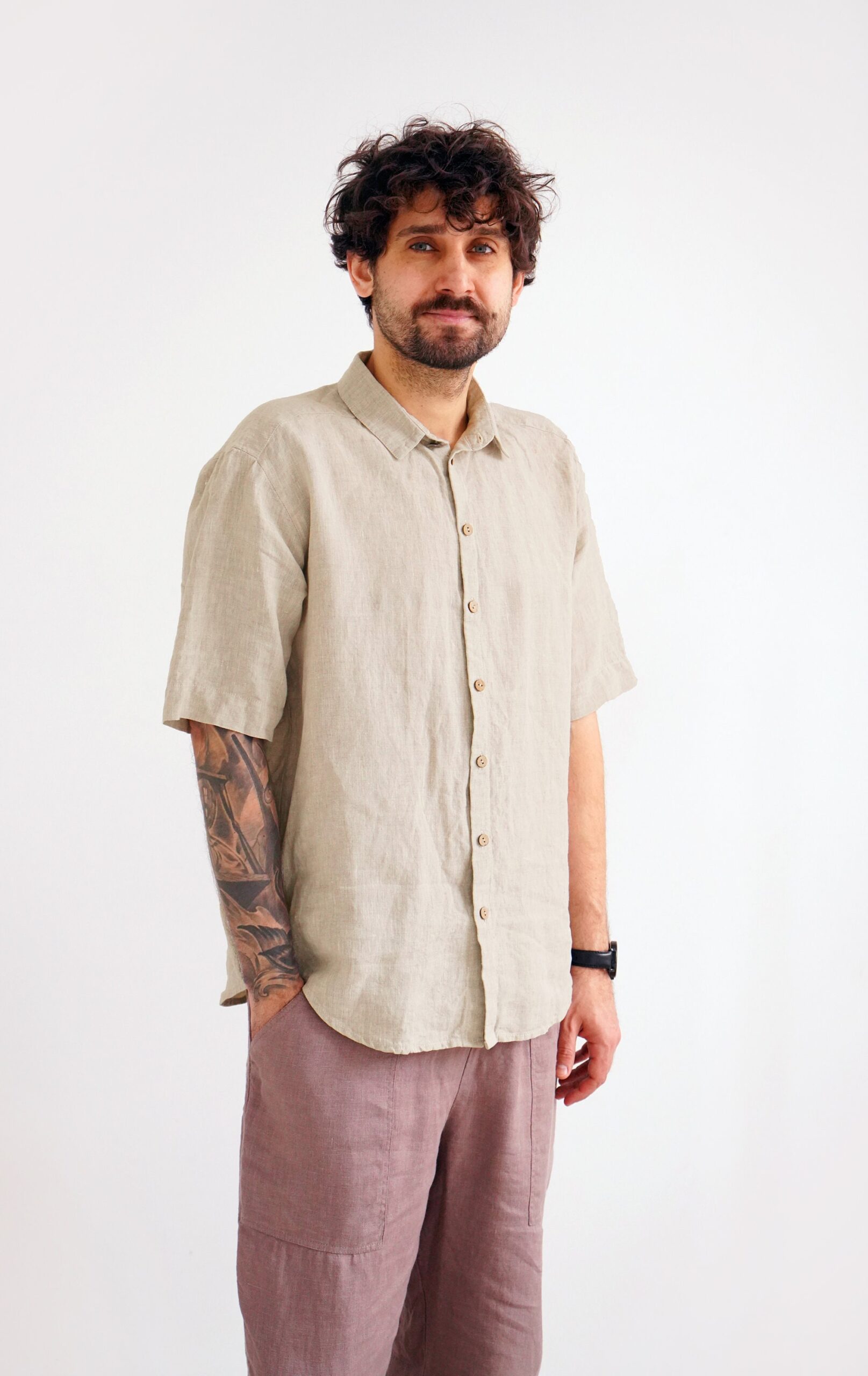 Relaxed Linen Shirt Sand Tone Linen for Men Casual Fit