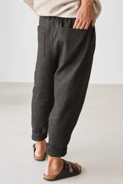 Loose-fit pants are made from 100% Linen and available in a variety of colors.