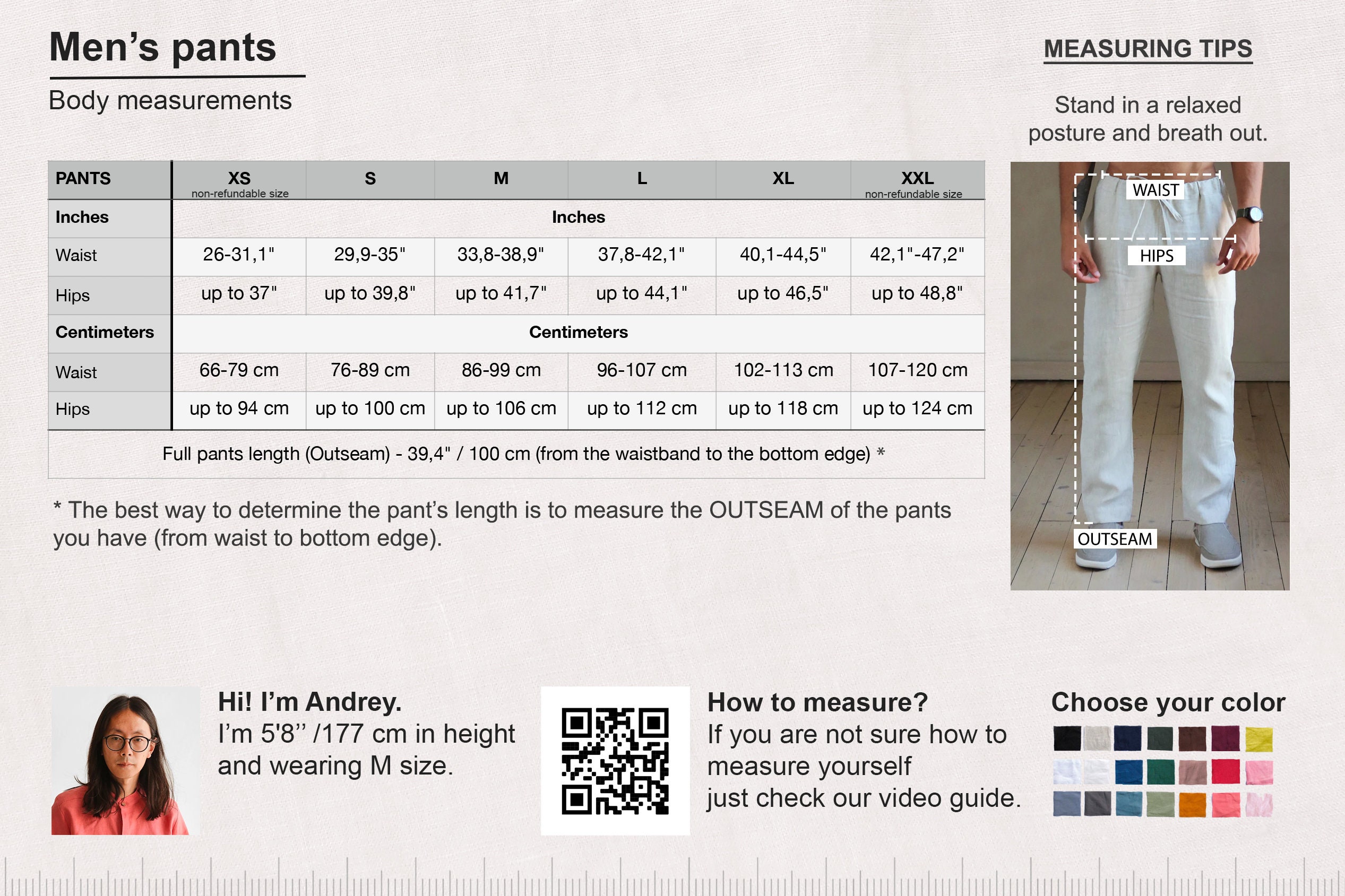 These pants are versatile, they are cozy and comfortable outdoors as well as at home. The fabric is breathable and takes the body shape, over time it becomes softer and more pleasant.